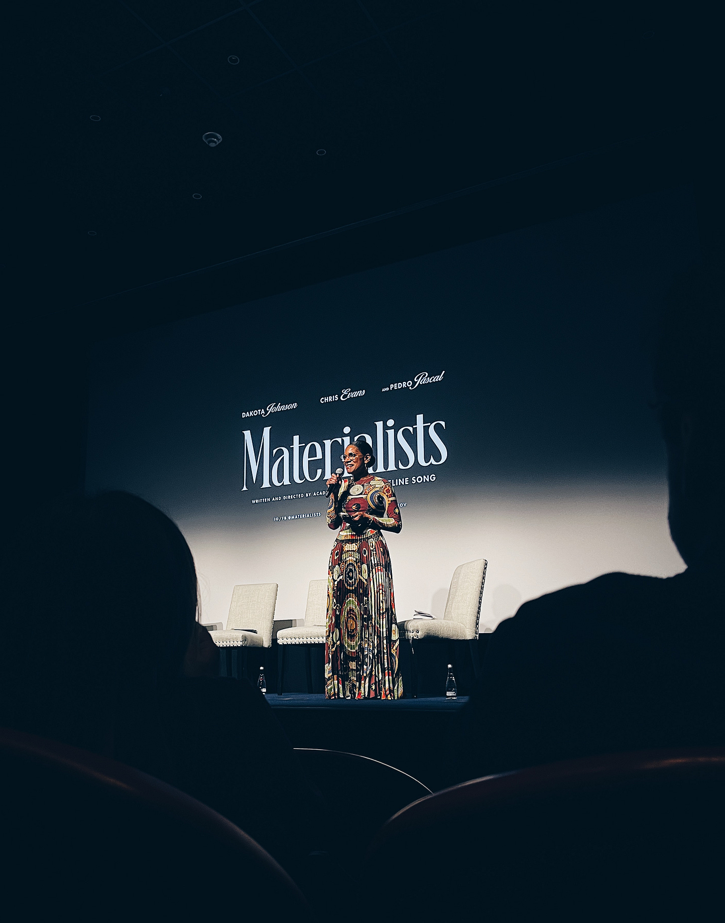 Audra asked, “You said your writing process is about chasing a feeling that you don’t quite understand. What feeling were you chasing with The Materialists? And what feelings do you think you will chase with other films that will come after this?”